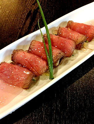 タイアップ企画第2弾は・・・宇都宮市にある、もつ鍋居酒屋 「なずな」さん。こちらでいただけるのは、「岩下の新生姜と香味野菜の煮込みローストビーフ 」 です。