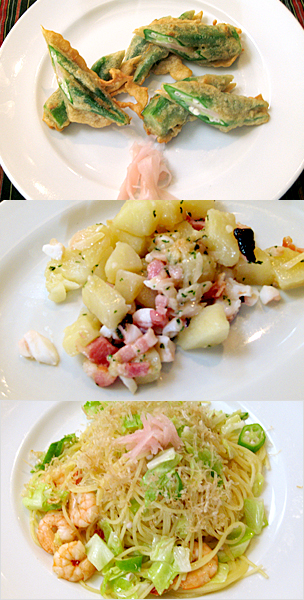 タイアップ企画第3弾は・・・足利市にある、和食とイタリアン融合のレストラン 「和伊の皿 美倭」さんです。こちらでいただけるのは、なんと3品!「岩下の新生姜使用 オクラのはさみ揚げ」「岩下の新生姜使用 タコのジャーマンポテト」「岩下の新生姜使用 美倭オリジナルパスタ(エビ・キャベツ・オクラ・糸がき) 」です。