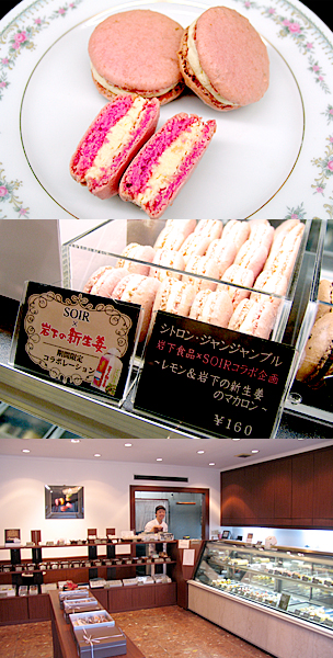 タイアップ企画第6弾は・・・栃木市にある「La Patisserie SOIR」さん。こちらでいただけるのは、「レモン&岩下の新生姜のマカロン――シトロン・ジャンジャンブル」です。 “新生姜カラー”ともいうべきピンク色の生地はさっくり♪中にはレモン風味のバタークリーム、 そして新生姜のコンフィが入っています。レモンと新生姜の爽やかな酸味と、後味に新生姜がほんのり香る上品な味のマカロン。12月末までと長く販売していただける予定です。(※11月25日(日)に『岩下の新生姜マッチデー』として、日光霧降アイスアリーナで行われたアイスホッケーの試合会場で販売したところ、開店1時間半で用意した100個が完売してしまったほどの人気商品です!)新・栃木土産にいかがですか?