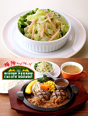 タイアップ企画第7弾は・・・爆弾ハンバーグや金券半額返還フェアで大好評のファミリーレストラン「フライングガーデン」さん。こちらでいただけるのは、「岩下の新生姜入り 特製コールスロー」です。 11月~1月までの3ヶ月間、毎月8日~14日に開催される「爆弾祭」期間限定メニューとして登場。セットでも、単品でもご注文いただけます。お肉料理が美味しくなる新生姜のサラダ、是非お試しください。