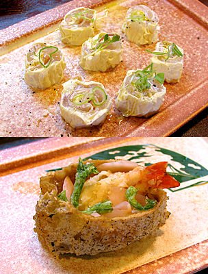 新生姜をたっぷり巻いた生春巻きはスイートチリソースをつけていただきます。牡蠣やハバネロといった、ちょっと意外な食材の組み合わせですが、ハバネロの辛みと新生姜の爽やかな風味が驚きの好相性!