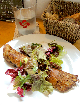 "ガレット"はフランスの郷土料理で、そば粉で作るクレープのような生地で具材を包むのが特徴。こちらのメニューは地元・新里産のそば粉を使った生地に、チーズ、ハム、それに丸ごと新生姜が1本!包まれています。新生姜のシャキッとした食感と生地のもちもち感、とろけたチーズの組み合わせが絶品です!