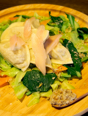 タイアップ企画第5弾は・・・栃木市にある「bistro WARABI」さんです。こちらでいただけるのは、 「岩下の新生姜ドレッシング」を使った3品。 「岩下の新生姜ドレッシングのサラダ」「和豚 もち豚のせいろ蒸し~岩下の新生姜ドレッシングと共に~」「岩下の新生姜の釜リゾット」です。