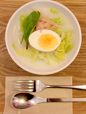 タイアップ企画第20弾はお好み焼き・もんじゃ焼きの「スズヤヨシモリ」さん。こちらでいただけるメニューは「岩下の新生姜入り九条ネギ焼き」です。使用している卵は栃木ブランドの「那須御用卵」。ネギは、京都で100年以上続く老舗から取り寄せているというこだわりの逸品。素材の自然な甘みと新生姜の爽やかな風味が上品なおいしさです。黄色と緑、新生姜のピンク色と、春らしい彩りで目にも楽しい一皿です。