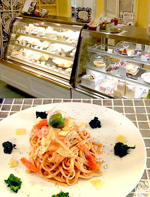 こちらでいただけるコラボメニューはチーズ専門店ならではの「サーモンのリングイネ~トマクリラクレット新生姜ソース」。