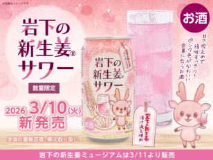 【新商品】「岩下の新生姜サワー」が缶になって3月10日から数量限定で発売。~イワシカちゃんが目印!淡いピンクで後味すっきりの食事に合うお酒~