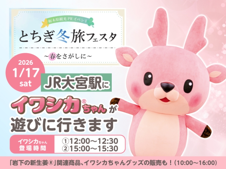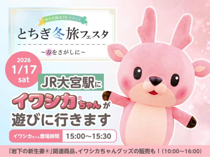 2026年1月17日(土)、JR大宮駅・東西連絡通路内スペースで開催される栃木県の観光PRイベント「とちぎ冬旅フェスタ~春をさがしに~」に、岩下の新生姜公式キャラクター「イワシカ®」ちゃんが遊びに行きます。