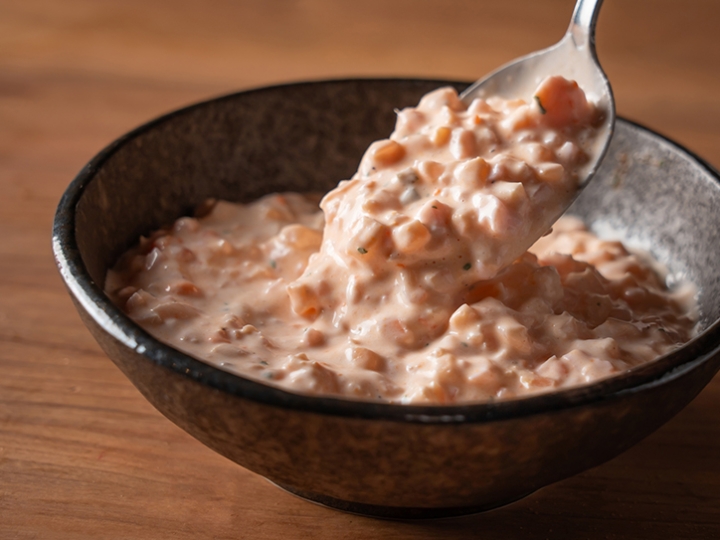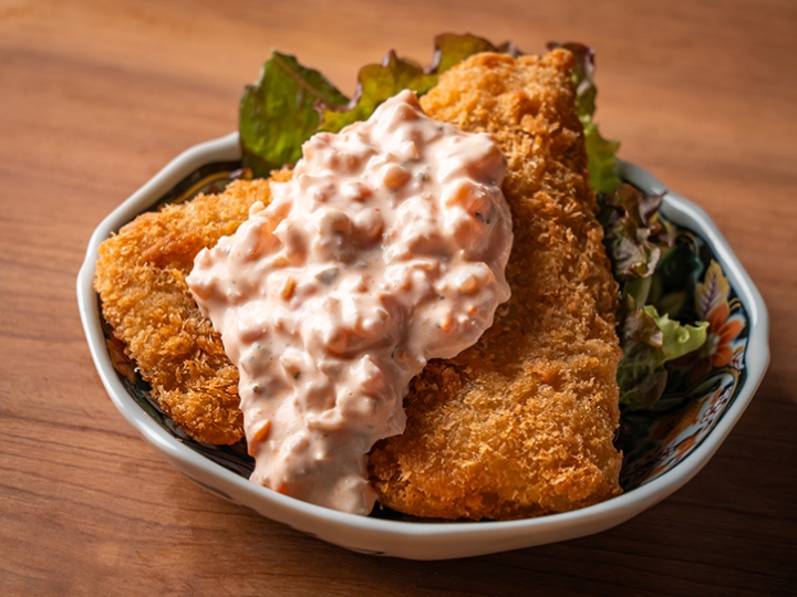 「岩下の新生姜®」をみじん切りにして、塚田農場のこだわり卵・塚だまを使った店仕込みの濃厚タルタルソースに混ぜ込みました。岩下の新生姜のやさしい辛さ、爽やかな香り、シャキシャキッと歯切れ良くさっぱりとした味わいは、揚げ物と相性抜群。ほんのりピンク色の見た目も春にぴったりです。