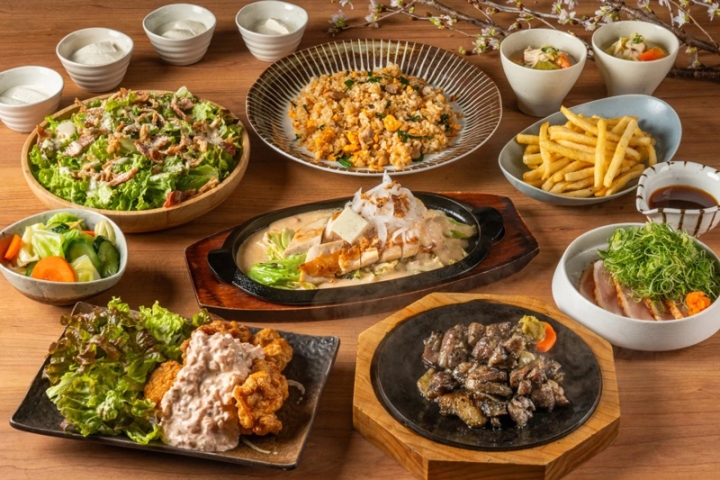 「春のダブル地鶏コース」は、塚田農場自慢の地鶏を堪能できる”鍋ナシ”宴会コースで、宮崎の魅力もたっぷり詰まったこの春イチオシのラインナップ。「岩下の新生姜入りタルタルソース 若鶏のチキン南蛮」のほか、地鶏の炭火焼やチキンステーキ、地鶏むねみたたきなど計10品が味わえる、飲み放題付きのプランです。