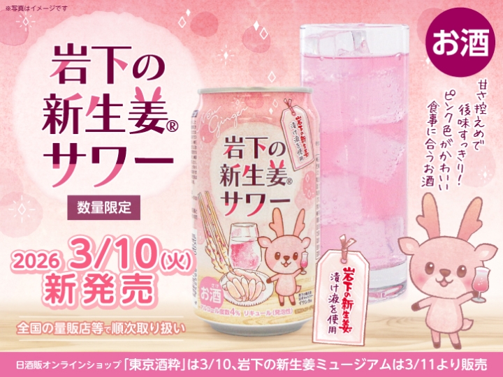 | 販売店舗 | ・全国の量販店等(順次) ・日酒販オンラインショップ「東京酒粋」(3月10日から) https://www.tokyoshusui.com/ ・岩下の新生姜ミュージアム(3月11日から) https://shinshoga-museum.com/ |