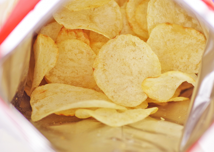 【岩下の新生姜味】スナック菓子…うすしお味のポテトチップスやつな揚げに、粉末小量をまんべんなくふりかける