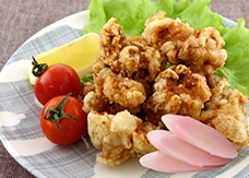から揚げ…鶏肉500gに粉末1包、酒大さじ1をもみ込んで10分おき、衣(片栗粉、小麦粉など)をつけて油で揚げる